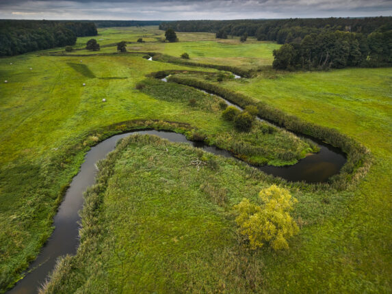 In the Oder Delta rewilding landscape, which comprises the centrally located 70,000-hectare Stettin Lagoon, and 380,000 hectares of surrounding forest and open areas, many streams and rivers are in poor ecological condition. Riverbeds have been artificially straightened, deepened, and embanked in many places, the free flow of water has been restricted by barriers such as dams and weirs, and the areas surrounding rivers drained and reclaimed for human activity, such as agriculture and forestry. Channelising rivers increases the speed of water flow, increases erosion, reduces the amount of sediment in the water, and reduces the diversity of riverbed habitats, which are essential for species such as fish and aquatic invertebrates.
