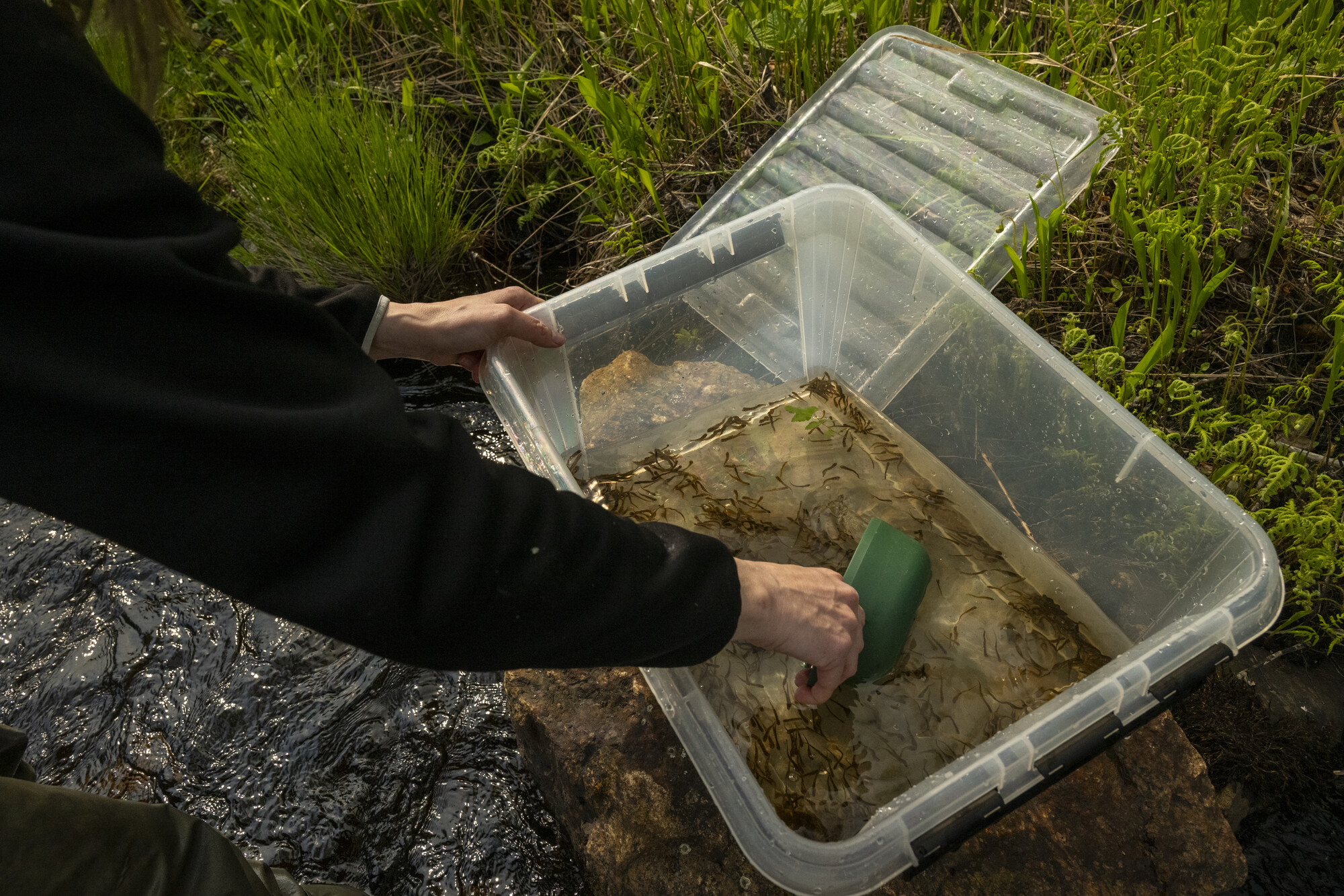 Like the Rewilding Apennines team, the Rewilding Sweden team are also working to support wildlife comeback through targeted releases. As part of wider river restoration efforts, around 200,000 juvenile brown trout have been released in various rivers in the landscape in 2024 and 2025, through collaboration between Rewilding Sweden, local municipalities, and fishing management organisations — including the by Vindelälvsfiske (the Vindel River Fisheries Foundation). The overall goal is well-connected, vibrant waterways with abundant trout populations, which will not only help to revitalise nature, but provide economic benefits through sustainable fishing — thereby helping people and rivers thrive together.