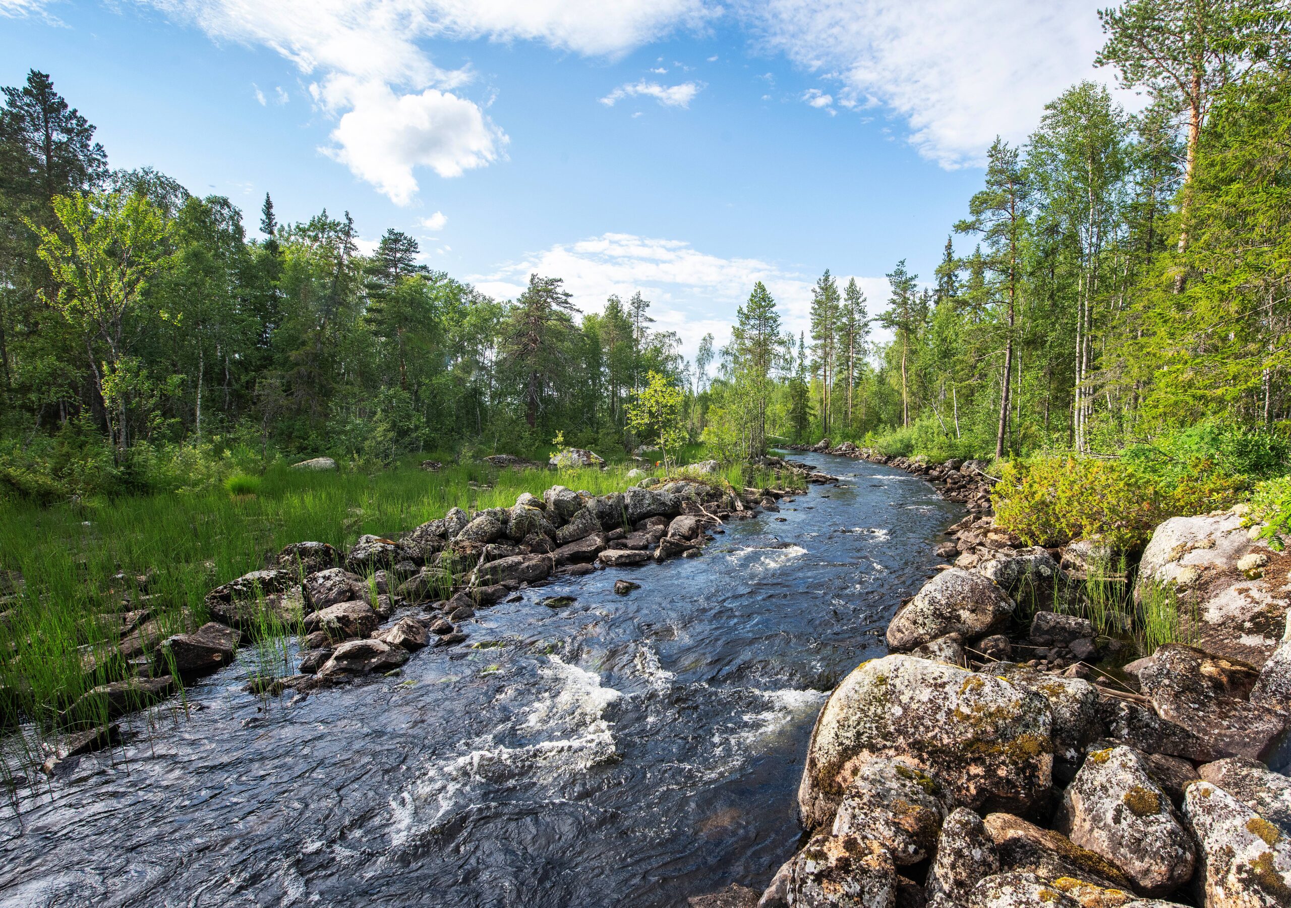 The Abramsån River is a tributary of the 210-kilometre long Råne River – Europe’s longest undammed forest river. It is typical of many waterways in the Swedish