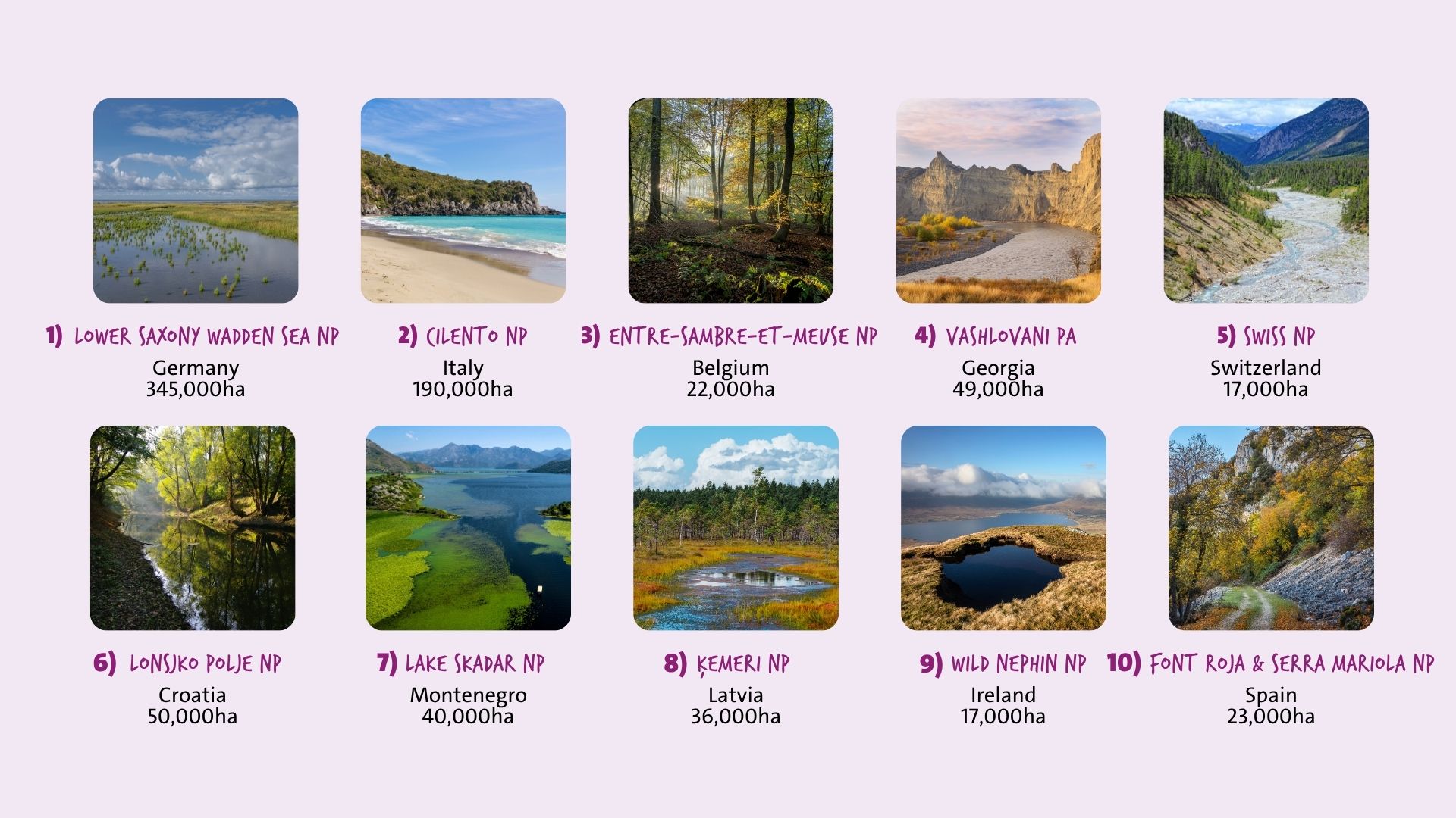 From Ireland in the west to Georgia in the east, we have worked for over two years with experts and a large number of protected area authorities to carefully select 10 parks as the frontrunners in the Wilder Parks initiative.